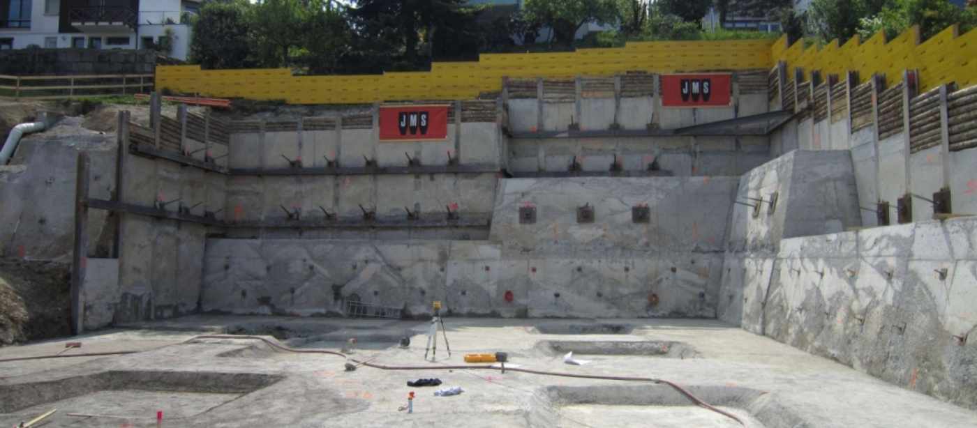 8832 Wollerau, Projekt und Baukontrolle Tragstruktur in Massivbauweise, Projekt und Bauleitung Baugrubensicherung mit verankerter Rühlwand