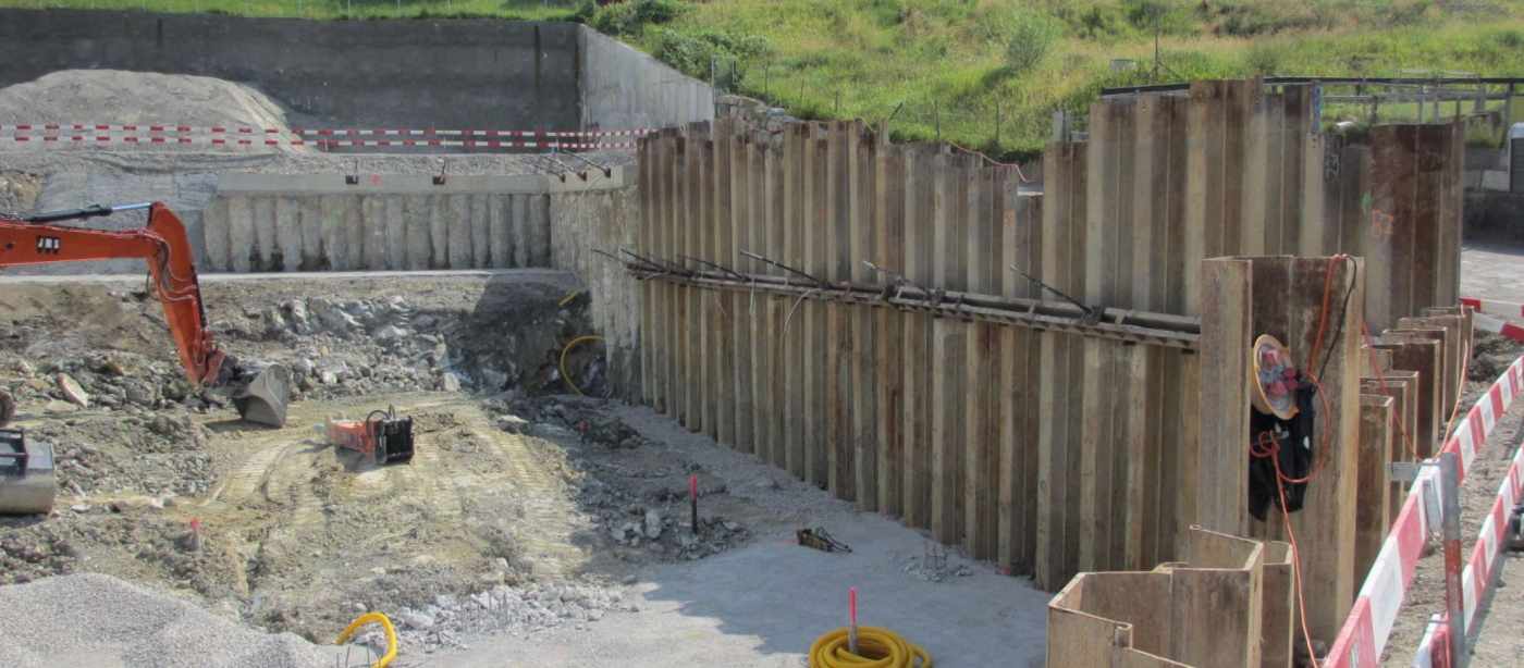 Baugrube Fabrikhalle Brestenburg, Schübelbach, Projekt und Fachbauleitung Baugrubensicherung