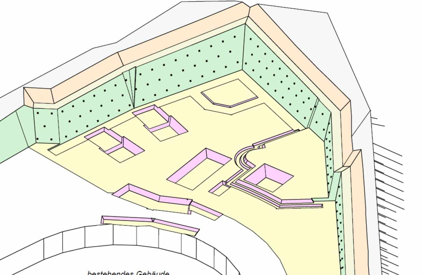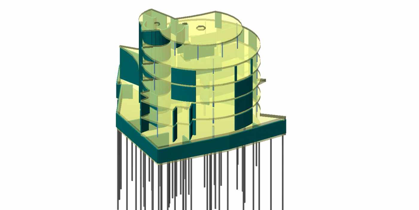 Beim Bauobjekt handelt sich um ein Geschäftshaus, in Massivbau, bestehend aus einem Untergeschoss, einem Erdgeschoss, drei Obergeschossen und einem Attikageschoss. Das Gebäude ist rund, der Radius im Obergeschoss beträgt ca. 10.00 m. Die Gebäudelasten müssen mittels einer Pfahlfundation in den Molassefels/ Moränenablagerungen abgetragen werden. Der Baugrubenabschluss des Gewerbegebäudes zur National- und Kantonsstrasse hin wird mittels einer Nagelwand mit Spritzbeton erstellt.