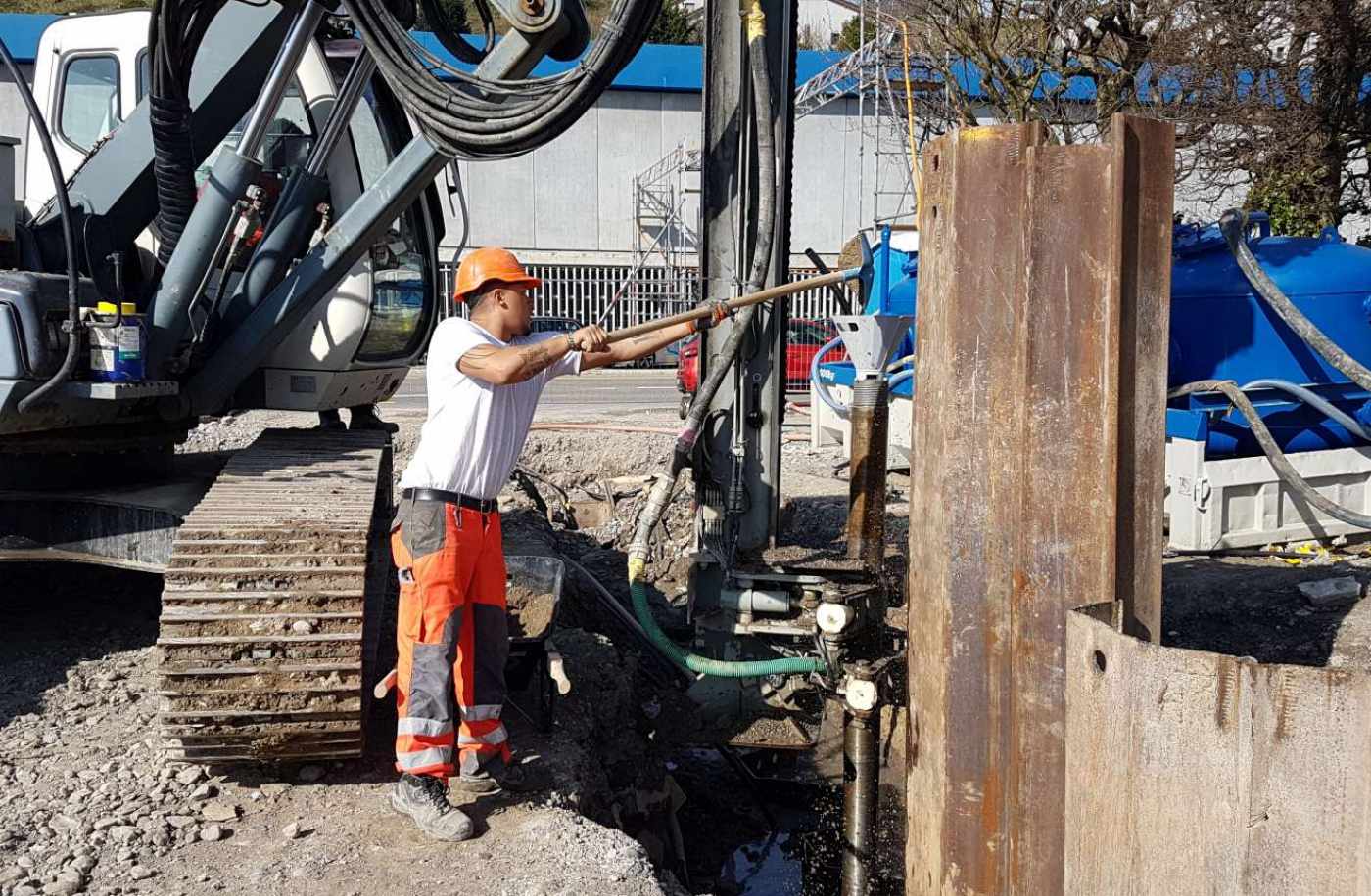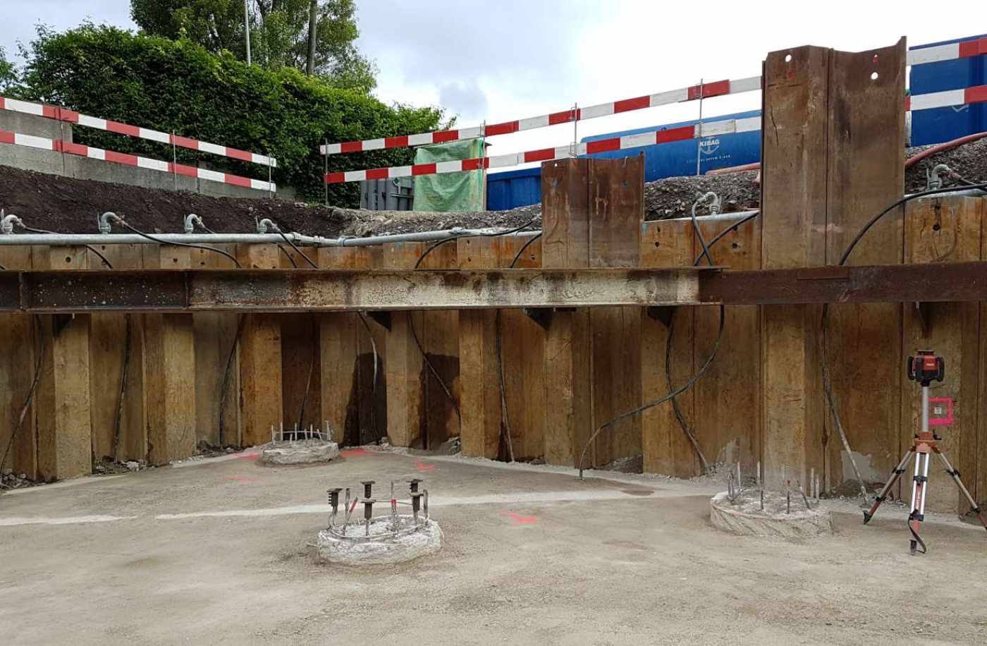 Der Projektperimeter liegt in Thalwil zwischen Seestrasse und Zürichsee. Für das Untergeschoss des Einfamilienhauses musste eine Baugrube ca. 2 m unterdem Seespiegel erstellt werden. Für die Wasserhaltung innerhalb des Spundwandkastens wurde ein Wellpoint-System eingerichtet. Da das Grundstück in einem belasteten Bereich liegt (Altlasten), musste das Pumpwasser zusätzlich zu Absetzbecken und Neutralisation durch eine mobile Reinigungsanlage mit einem Sand- und zwei Aktivkohlefilter geführt werden.