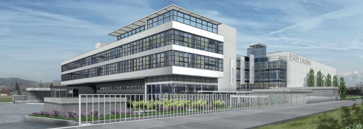 Neubau eines Distribution-Center für Estée Lauder in Galgenen. Erstellt wurde ein dreiteiliges Gebäude mit Büro, Logistikfläche und vollautomatisches Hochregallager.