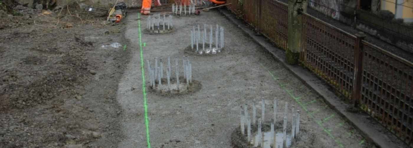 Fundation mittels Ortbetonbohrpfählen, damit die bestehende Mauer keine zusätzlichen Belastungen erfährt.