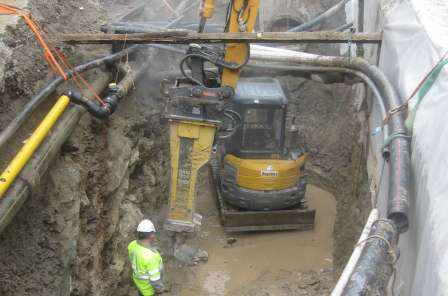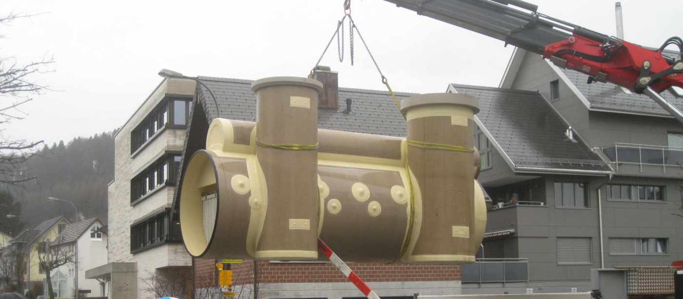 Die Hochwasserentlastung liegt mitten im Dorfkern von Pfäffikon und gehört zum Entwässerungssystem der Gemeinde Freienbach. Die alte Hochwasserentlastung musste ersetzt werden. Aufgrund der äusserst engen Platzverhältnisse entschied sich die Gemeinde für einen "CSO Chamber" der Firma HOBAS. Dieses System einer Hochwasserentlastung wurde in der Schweiz zum ersten Mal eingesetzt. Die Kammer trennt grobstoffliche Verunreinigungen wirkungsvoll aus dem Abwasserstrom und führt diese weiter zu Kläranlage. Somit kann sichergestellt werden, dass nur relativ unverschmutztes Wasser in die Bäche und Seen fliesst. Die geringen Platzverhältnisse für die Baugrube und die Tatsache, dass die Leitungen während der Versetzung weiterhin funktionieren mussten, machten dieses Projekt besonders anspruchsvoll.