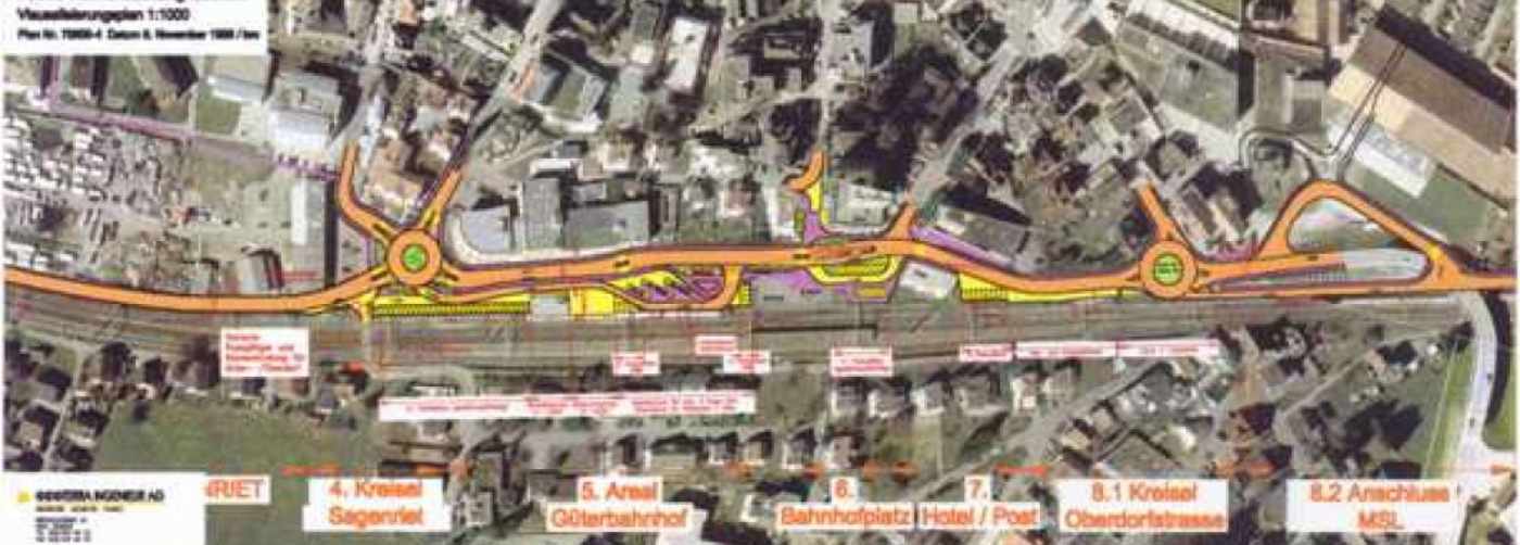 Eine zentrumsnahe Umfahrung soll den geschützten Dorfkern von nationaler Bedeutung in Lachen vom Durchgangsverkehr entlasten. Von den ersten Ideen bis zum Vorlageprojekt für die Volksabstimmung haben wir das Projekt zuerst für die Gemeinde Lachen als Initiant und später für den Kanton Schwyz als Projektträger erarbeitet.