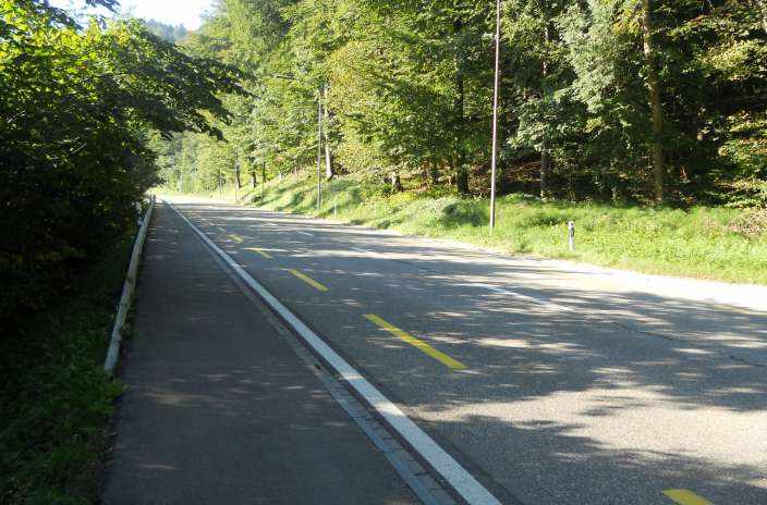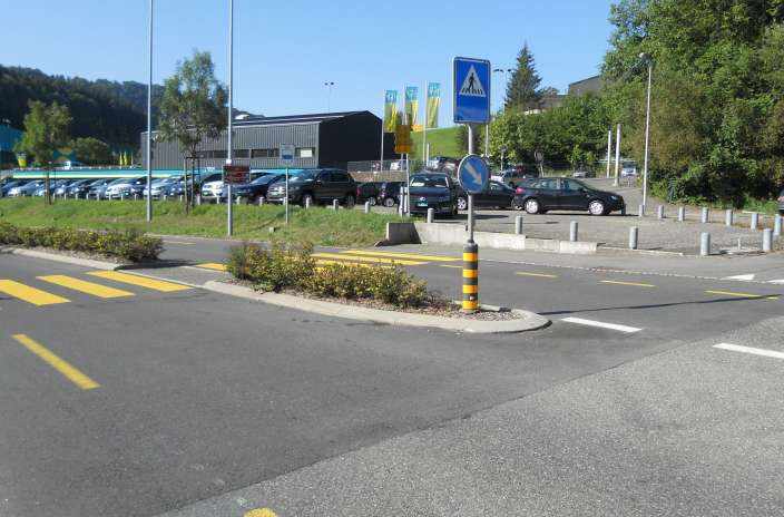 Belagssanierung, Definition/Abgrenzung Normstrassenraum, Bushaltestelle bei Station Sihlbrugg (Option), abgetrennter Rad- und Gehweg, geschützte Rad- und Fussgängerübergänge