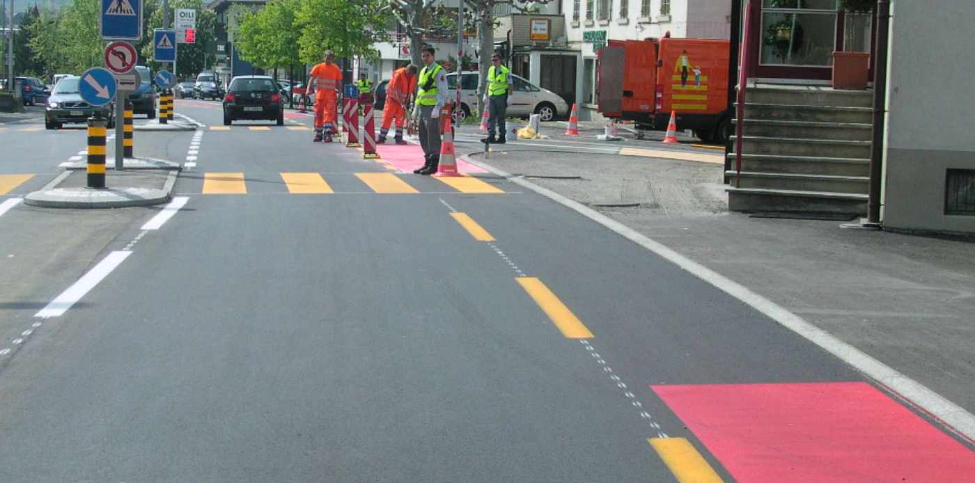 Das Projekt umfasst folgende Bauteile: Kantonsstrassenausbau in Etappen im gesamten Bereich der Ortsdurchfahrt mit Verkehrstrennungsmassnahmen (Radstreifen). Es standen in erster Linie Aspekte der Leistungsfähigkeit und Funktionalität im Vordergrund. Neugestaltung Zentrumskreuzung unter spezieller Berücksichtigung des Langsamverkehrs und der Erschliessung der unmittelbar anstossenden Geschäftsliegenschaften/Integration der geplanten Erschliessung Schweizerhof/Bauen unter Verkehr/Beschränkte Platzverhältnisse Es galt auch die Gestaltung des Strassenraumes und die entsprechendende Integration ins Dorfbild umzusetzen.