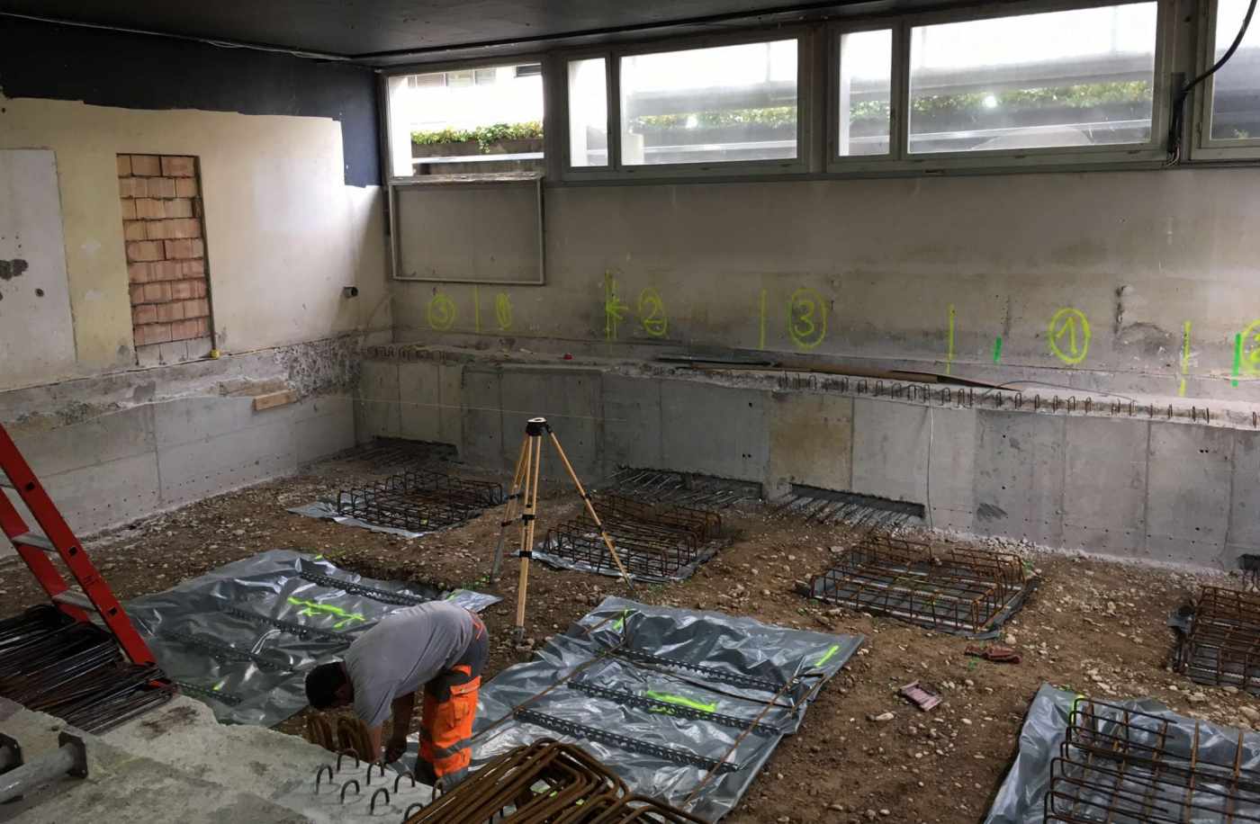 Die bestehende Trafostation Shed I musste erneuert und ausgebaut werden. Dazu wurde im Gebäude die bestehende Bodenplatte abgebrochen, das Gebäude unterfangen und einen neuen Kabelkeller erstellt. Für die zukünftige Produktionsstätte im Erdgeschoss musste das Tragwerk umfänglich verstärkt werden. Zugleich wurde auch die Technikzentrale umgebaut und hinsichtlich Erdbebensicherheit ertüchtigt.
