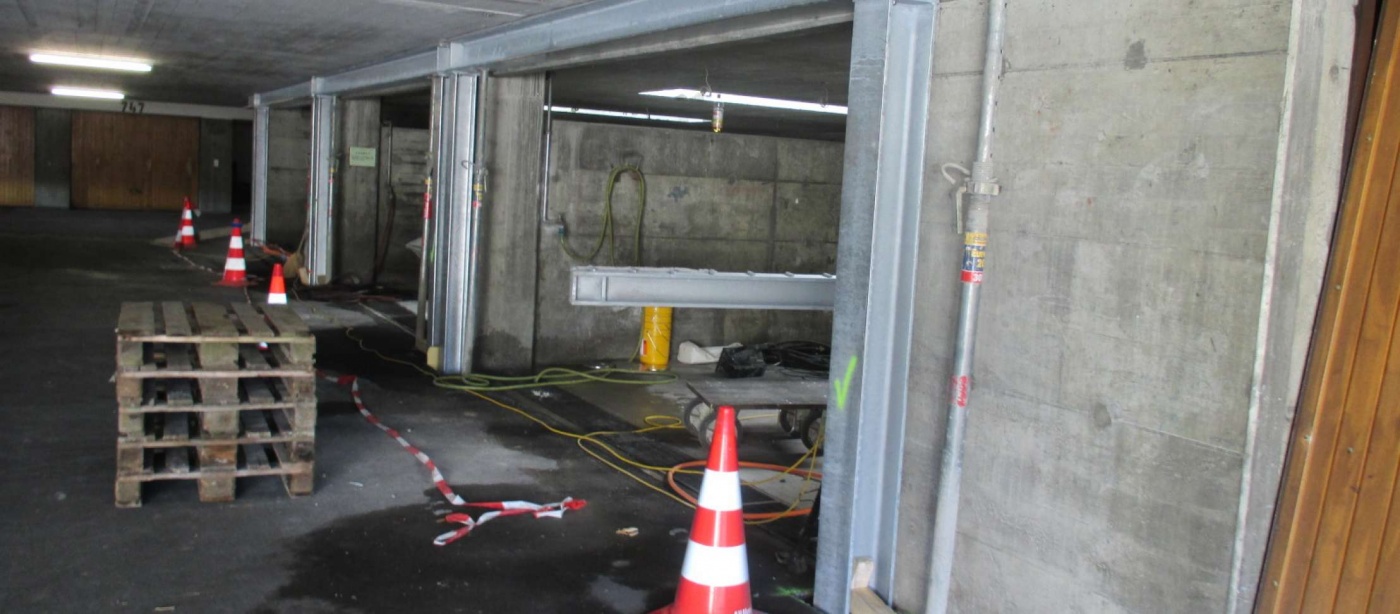Sanierung Tiefgarage Schützenstrasse, Pfäffikon, Überprüfung Tragsicherheit und baulicher und technischer Brandschutz. Berechnung eines Kostenvoranschlages. Projekt und Baueingabe in Zusammenarbeit mit den Behörden/Fachplanern. Erstellung sämtlicher Ausschreibungsgrundlagen und gesamte Submission. Ausführungs- und Detailpläne für Sanierungs-, Stahlbau- und Betonarbeiten. Örtliche Bauleitung