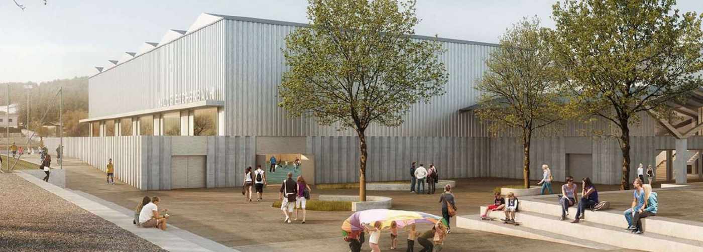 Der Neubau der Dreifachsporthalle in Eschenbach SG wird als Erweiterungsbau an den bestehenden Dorftreff angebaut. Da die Bodenplatte in eine schlecht tragfähige Schicht zu liegen kommt, ist eine Pfahlfundation notwendig. Die Tragstruktur der Halle besteht grundsätzlich aus Ortbeton, das Dach teilweise aus vorgespannten Betonträgern, welche die Holzkonstruktion tragen. Durch dessen spezielle Geometrie und der Firstausbildung galt es besondere Lastsituationen zu berücksichtigen. Die Spannweite der vorgespannten Betonträgern beträgt 29.5m.