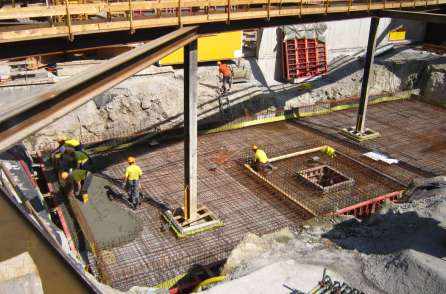 Fundation auf Fels, zum Teil mit Tatzen, respektive Grossbohrpfählen
