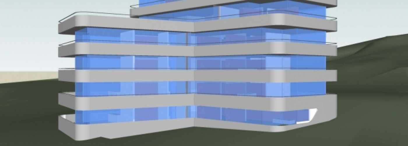 Sternförmiges Hochhaus auf Tiefgarage. Baugrube mit vernagelter Böschungssicherung