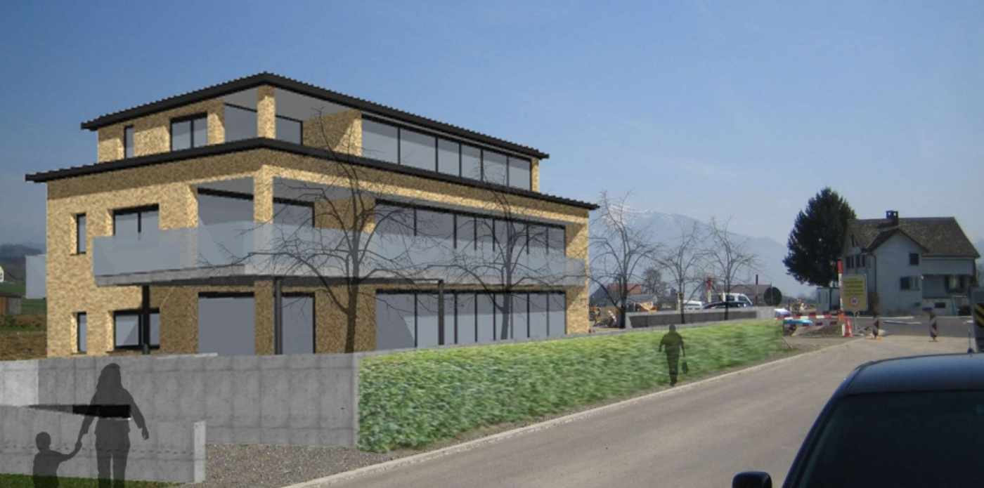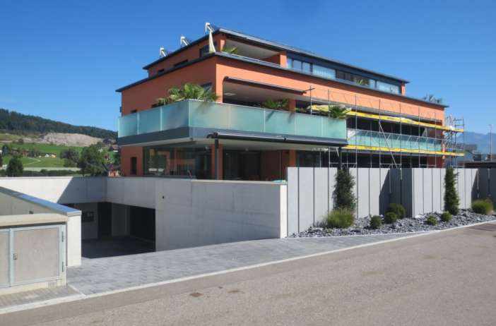 Bei diesem Neubau handelt es sich um ein Mehrfamilienhaus in Massivbau, bestehend aus einem Untergeschoss, einem Erdgeschoss, einem Obergeschoss und einem Dachgeschoss. Die Grundrissabmessungen im Erdgeschoss betragen zirka 13.5m x 23.0m. Die horizontalen Tragelemente bestehen aus schlaff bewehrten Stahlbetondecken, die vertikalen Tragelemente aus Mauerwerks- und Stahlbetonwänden sowie vorfabrizierten Stahlbeton- und Stahlstützen. Das Bauwerk wird als Wohngebäude genutzt.