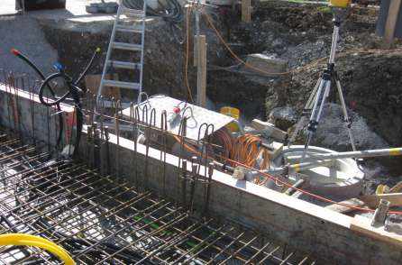 Die horizontalen Tragelemente bestehen aus schlaffbewehrten Stahlbetondecken, die vertikalen Tragelemente aus Stahlbeton- und Mauerwerkswänden sowie vorfabrizierten Stahlstützen.