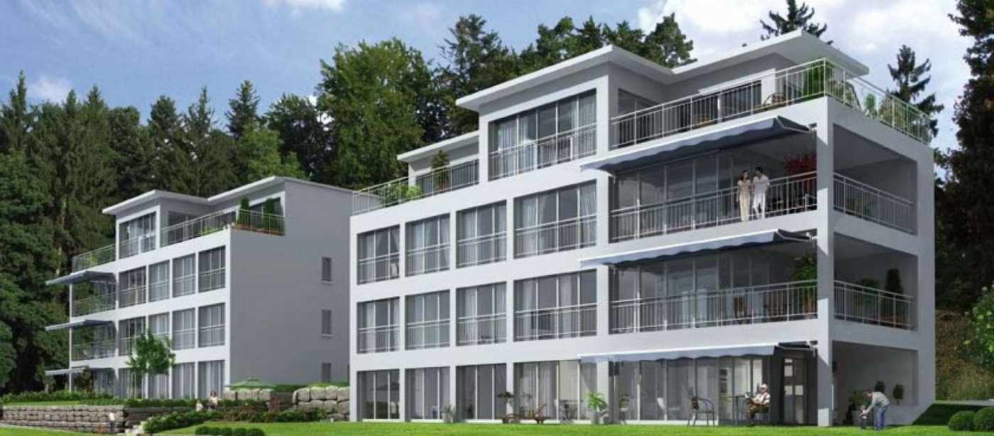 Am Waldrand von Wermatswil entstanden an ruhiger, ländlicher Lage zwei Mehrfamilienhäuser. Das eine Geäude steht teilweise auf der Tiefgarage. Durch die Optimierung der Garage im Hang entstand ein grösserer Deckenversatz, dessen Anschluss ans Sichtbeton-Treppenhaus eine Speziallösung erforderte. Durch die Einsparungen bei Deckenstärke, Bewehrung und Aufschüttung konnte dennoch eine günstige Lösung gefunden werden. Das zweite Haus steht auf einem separaten Untergeschoss und ist nur durch einen Verbindungsgang an die Garage angebunden.