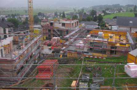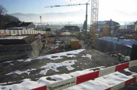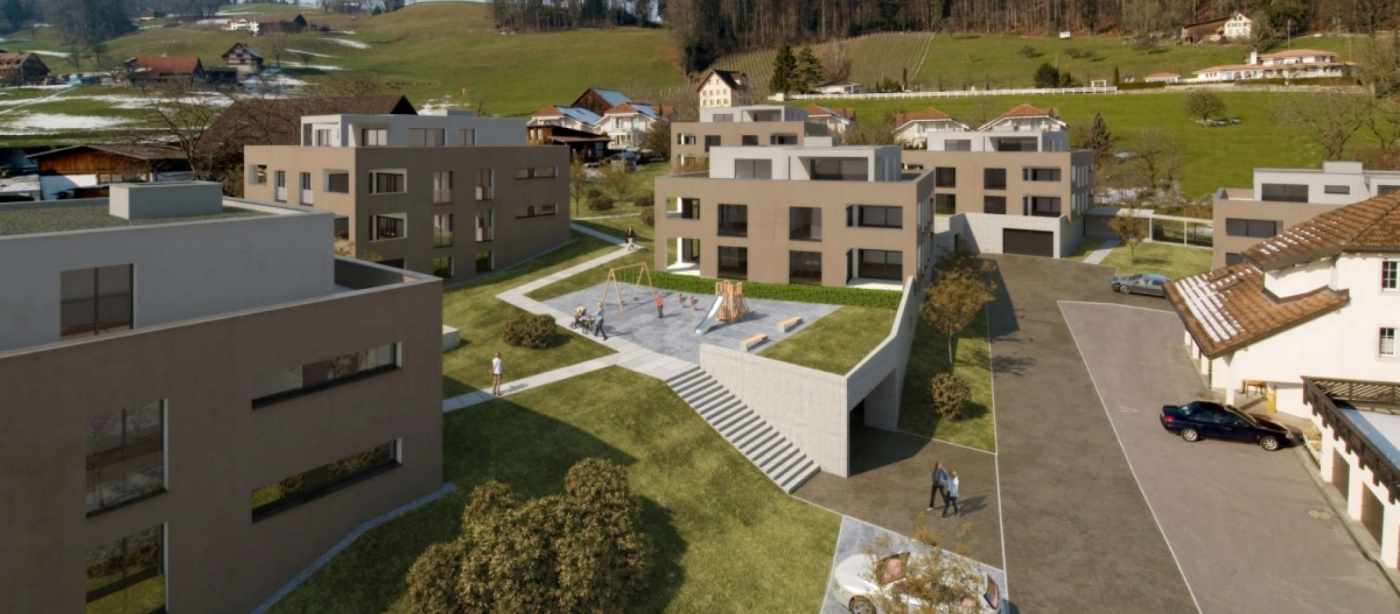 An idyllischer Hanglage mit Ausblick über die Linthebene entstanden sechs Mehrfamilienhäuser auf zwei grösseren Sammelgaragen. Die Hanglage ergab unterschiedliche Fundationsniveaux. Die Überbauung wurde grösstenteils flach fundiert, teilweise waren jedoch Fundationstatzen in die tragfähigen Schichten notwendig. Die grosse und verwinkelte Baugrube musste im Kriechhang mit einer kombinierten Anker-/Nagelwand gesichert werden. Die Baugrubenüberwachung mittels eingespritzter Inklinometermessketten wurde mit einer geodätischen Messung kombiniert .