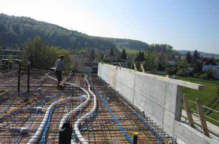 Die horizontalen Tragelemente bestehen aus schlaffbewehrten Stahlbetondecken, die vertikalen Tragelemente aus Stahlbeton- und Mauerwerkswänden sowie vorfabrizierten Stahlbeton- und Stahlstützen.