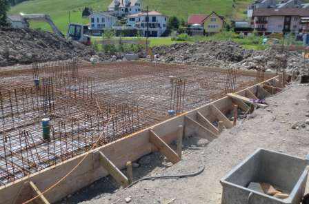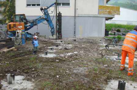Das bestehende wie auch das neue Gebäude sind auf Pfählen fundiert. Dazu wurden 23 Injektionsrammpfähle erstellt, welche bis zu 30m lang sind.
