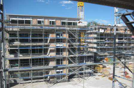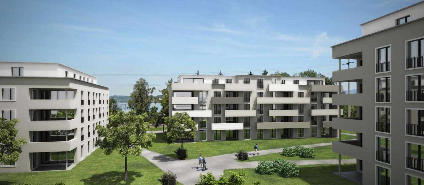 Es handelt sich um drei Mehrfamilienhäuser und ein Gewerbehaus in Massivbau, bestehend aus einem Untergeschoss / Einstellhalle, einem Erdgeschoss, drei bzw. vier Obergeschossen und einem Dachgeschoss. Die horizontalen Tragelemente bestehen aus schlaff bewehrten Stahlbetondecken, die vertikalen Tragelemente aus Stahlbeton- und Mauerwerkswänden sowie vorfabrizierten Stahlbeton-, Stahlverbund- und Stahlstützen. Die Gebäude beinhalten Wohnflächen, Büroflächen und Verkaufsflächen.