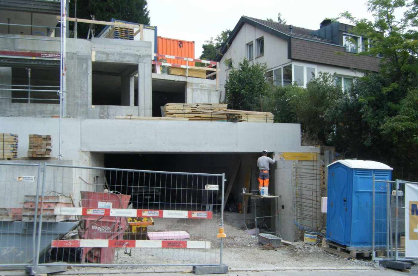 Es handelt sich um ein Einfamilien in Massivbau, bestehend aus einem Untergeschoss, einem Erdgeschoss und einem Obergeschoss. Die horizontalen Tragelemente bestehen aus schlaff bewehrten Stahlbetondecken, die vertikalen Tragelemente aus Stahlbeton- und Mauerwerkswänden sowie vorfabrizierten Stahlbeton-, Stahlverbund- und Stahlstützen. Das Grundstück befindet sich in einer Hanglage, daher wird zweiseitig eine Nagelwand erstellt und auf der dritten Seite eine Rühlwand.