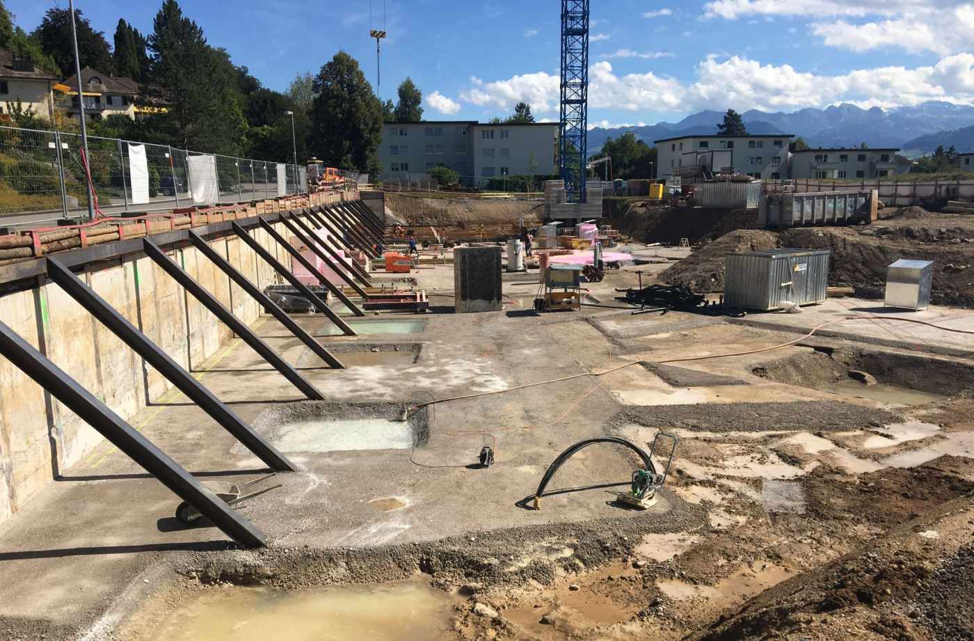 Die Tragstruktur im Hochbau besteht aus tragenden Mauerwerks- und Betonwänden mit schaff bewehrten Stahlbetondecken. Die Gebäude konnten flach fundiert werden. Im Zuge der Bauarbeiten mussten auch die Kanalisationssammelleitung sowie die Trinkwasserleitung der Wasserversorgung Rapperswil-Jona umgelegt werden.