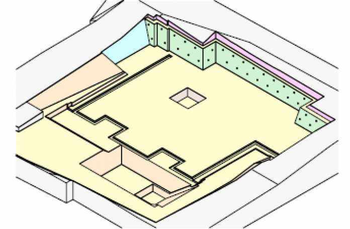 Um differenzielle Setzungen auszuschliessen werden die Gebäudelasten mittels einer Pfählung auf den Fels abgetragen. Der Baugrubenabschluss wird zur Bahnlinie hin mit einer 3:2-Böschungausgeführt. Hangseitig wird eine Nagelwand mit Spritzbeton erstellt.