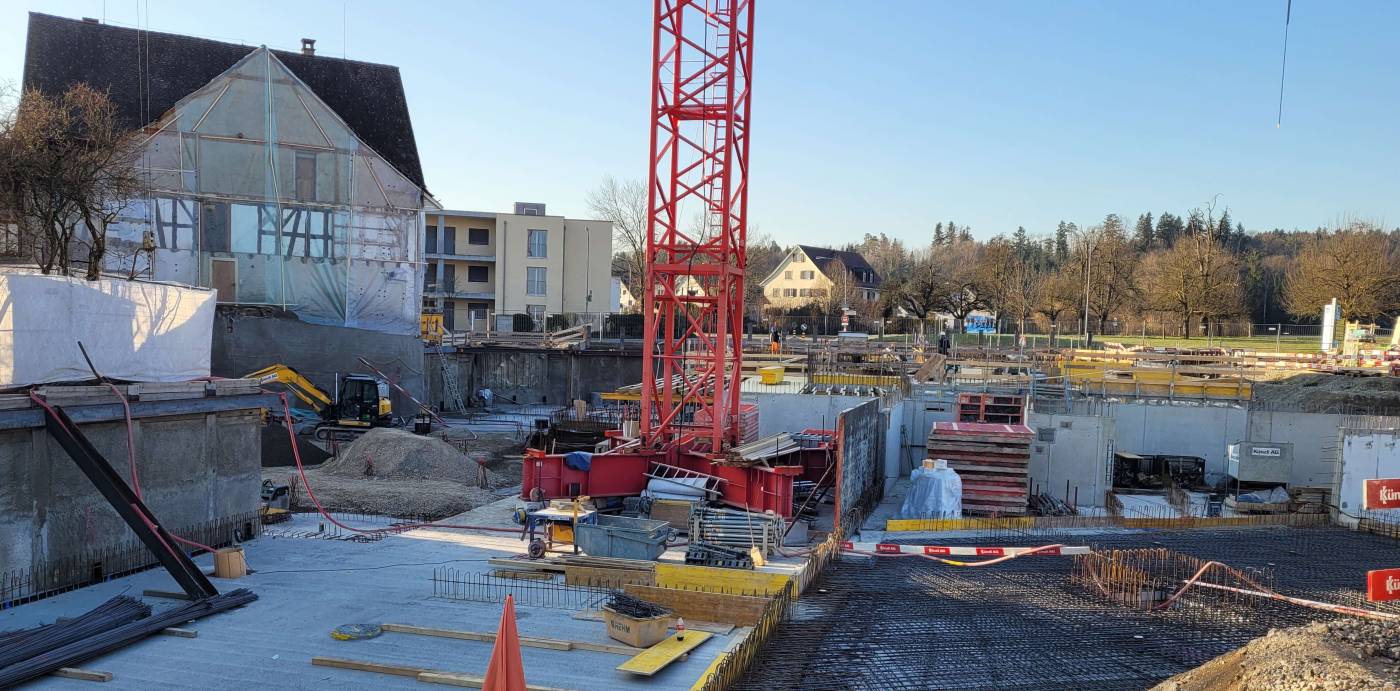 An der Rällikerstrasse in Mönchaltorf entsteht eine Wohnüberbauung mit drei neuen Mehrfamilienhäusern. Die Neubauten sind mittels einer durchgehenden Tiefgarage miteinander verbunden. Die Gebäude bestehen aus Mauwerks- und Betonwänden und schlaff bewehrten Stahlbetondecken. Die Überbauung ist flach auf einem gut verdichtetem Materialersatz fundiert. Zur Erstellung der Baugrube waren teilweise innengespriesste Rühlwände und Unterfangungen der bestehenden Gebäude notwendig. Zudem musste mit Filterbrunnen das Grundwasser abgesenkt werden. Für den Endzustand wurden Zugpfähle zur Auftriebssicherung eingebaut. Im Zusammenhang mit der Überbauung werden ebenfalls die zwei denkmalgeschützten Gebäude umgebaut. Hierzu mussten diese hinsichtlich Erdbeben ertüchtigt werden.