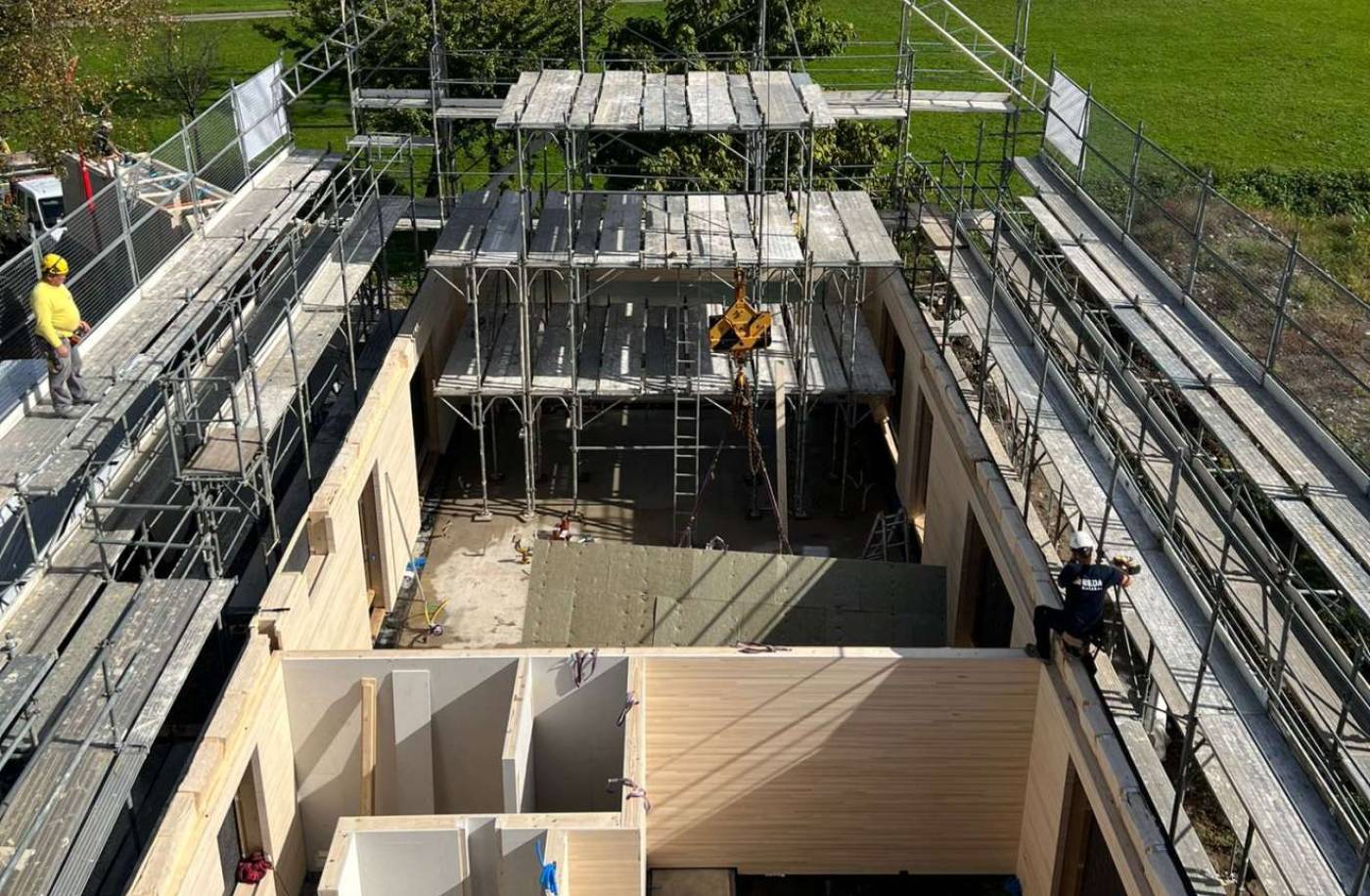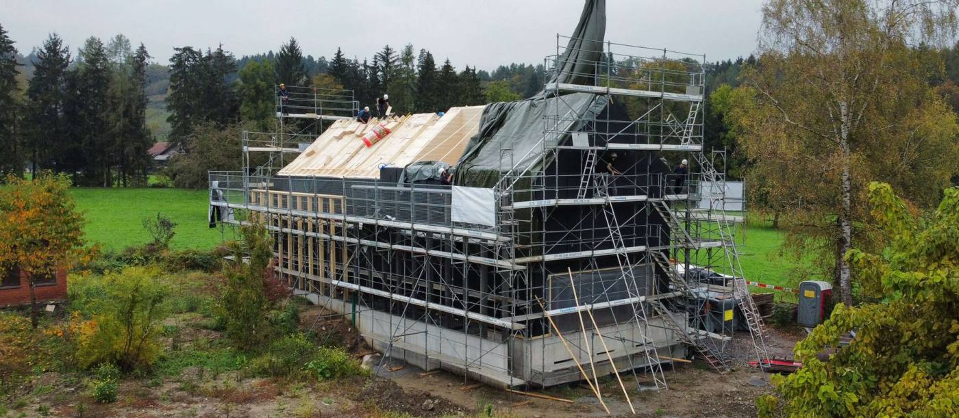 Projektierung, Ausschreibung und Realisierung der Holzkonstruktion in Elementbau, sowie dem Untergeschoss in Massivbauweise.