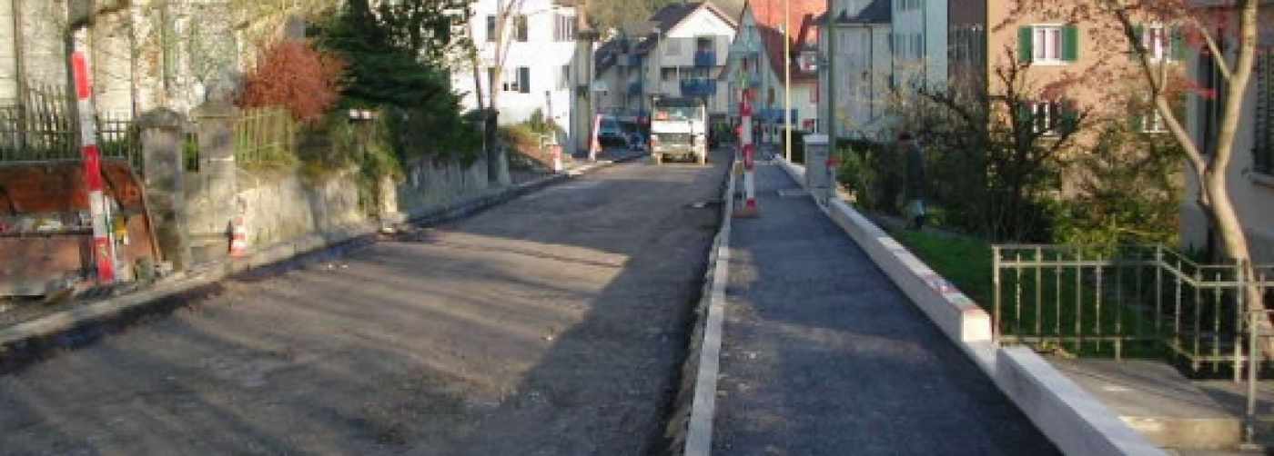 Strassensanierung auf einer Länge von 850m, inklusive Aufarbeitung des Verkehrskonzepts für die Totalsperrung mit provisorischem Kreisel.