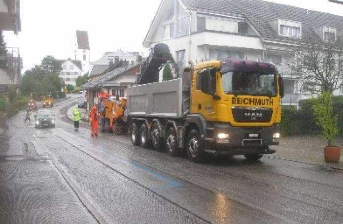An der Kirchstrasse in Freienbach wurde im Abschnitt «Kirche bis Kantonsstrasse» auf einer Fläche von ca. 2'000m2 der bestehende Deckbelag abgefräst und ein neuer Deckbelag eingebaut.